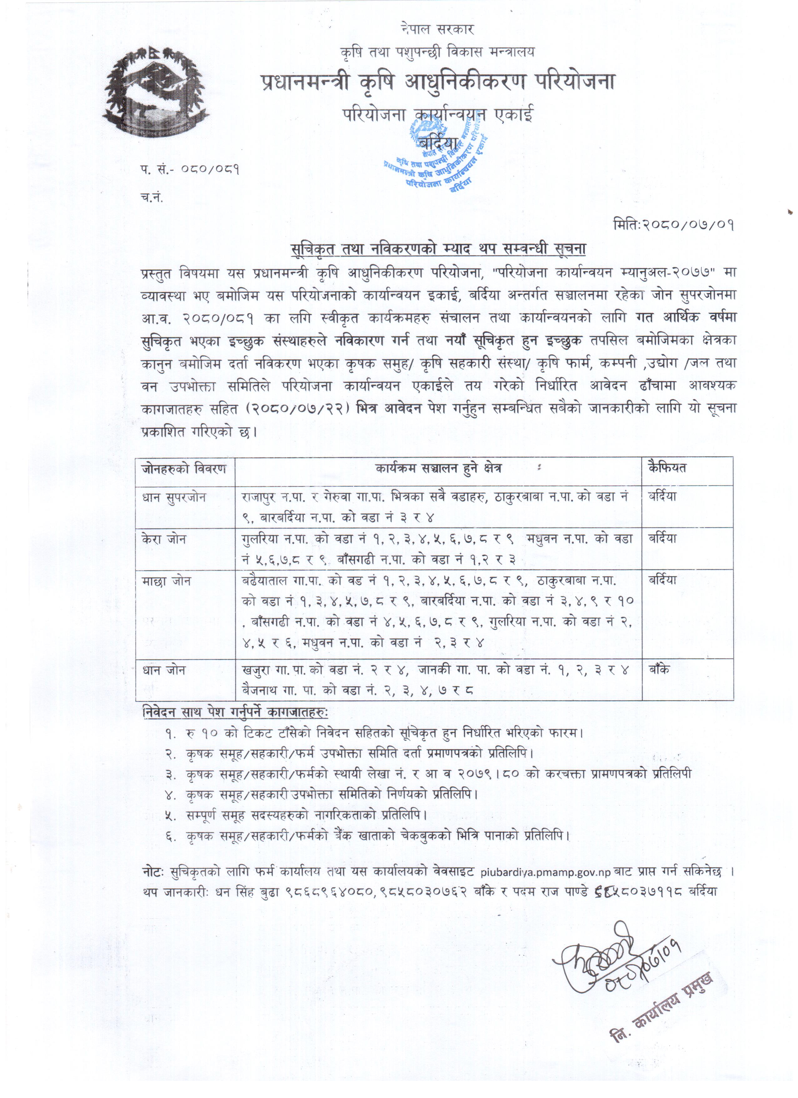 आर्थिक बर्ष २०८०।८१ मा सूचीकृत तथा नवीकरण गर्ने म्याद थप सम्बन्धी सूचना ।