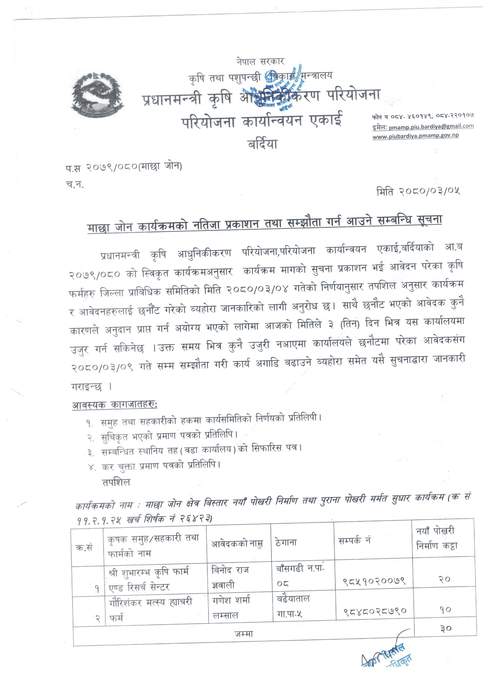 माछा जोन नतिजा प्रकाशन तथा सम्झौता गर्न आउने सम्बन्धि सूचना ।