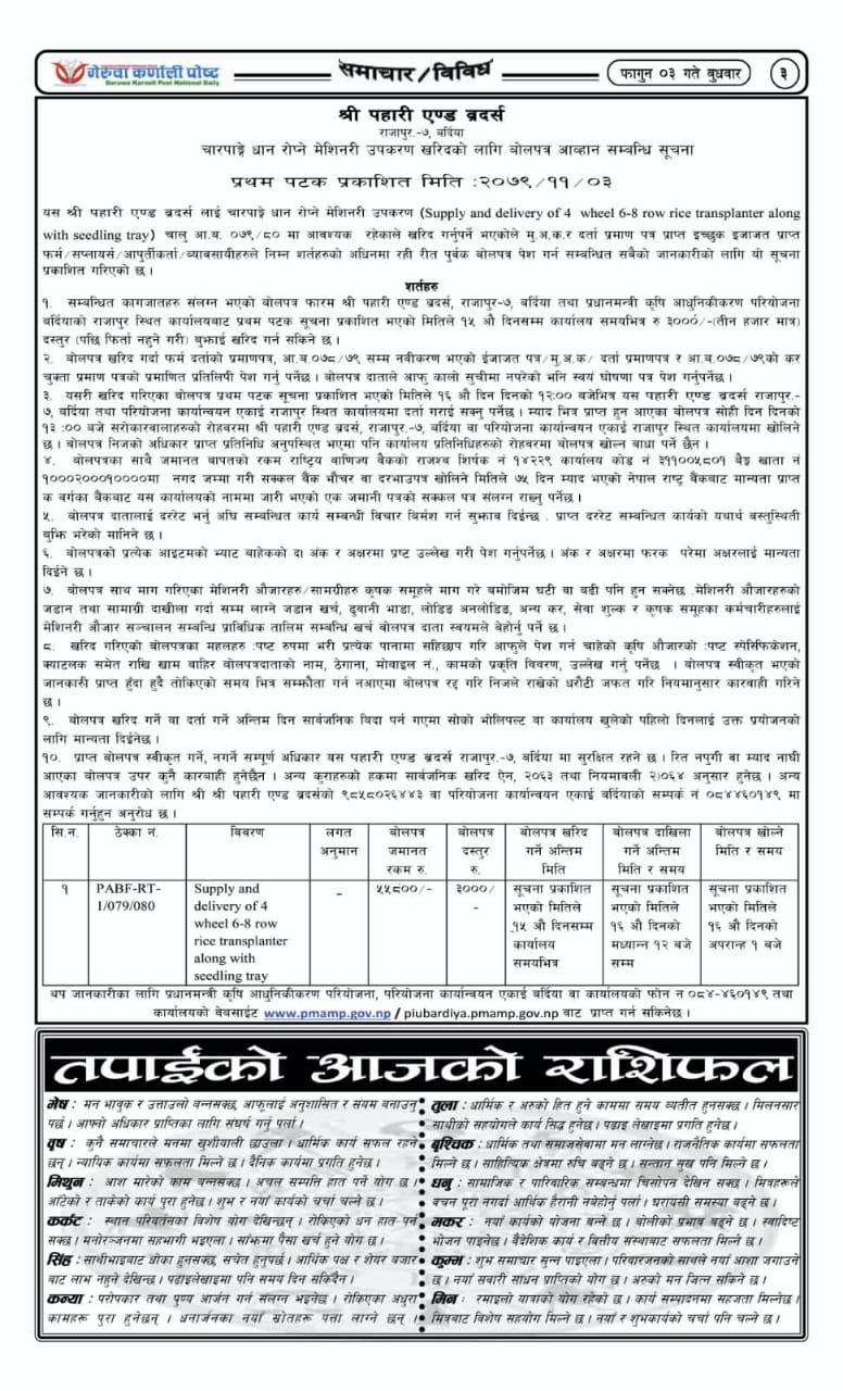 राईस ट्रान्स प्लान्टर मेशिन खरिद सम्वन्धि सूचना ।
